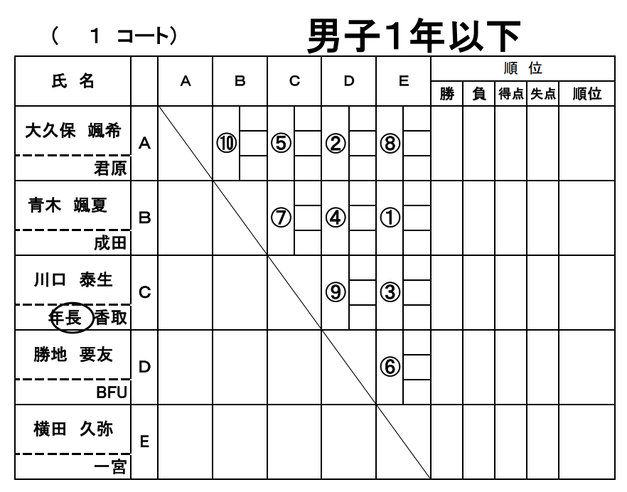 男子1年生以下